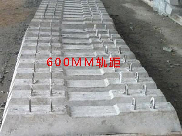 水泥軌枕常用軌距有600mm、762 mm、900 mm。適用鋼軌型號有12kg,15kg,18kg,22kg,24kg,30kg,38kg,鋼軌的型號不一樣,水泥枕木的尺寸也不一樣。